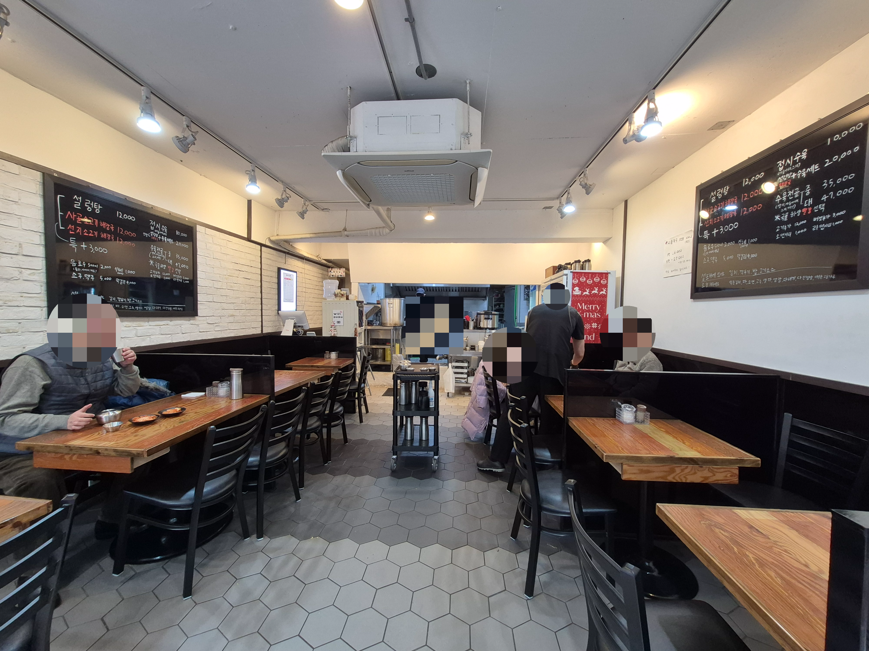 윤가평화설렁탕해장국 매장은 창동역 2번 출구에서 맘스터치 코너에서 골목으로 들어가요. 본죽 비빔밥 카페를 지나 쭉 가면 보여요. 3분 정도 걸려요. 여기는 1980년대에 평화시장에서 설렁탕, 해장국집을 하셨던 할머니의 노하우를 전수받아 한우사골로 진하게 육수를 우려내서 만들었다고 해요.